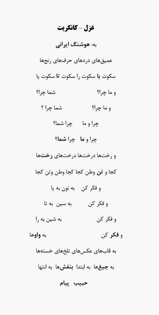 غزل- کانکریت/ سروده: حبیب پیام/ به: هوشنگ ایرانی