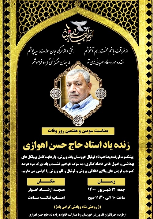 برگزاری آببن سومین و هفتمین روز وفات زنده یاد استاد حاج حسن اهوازی