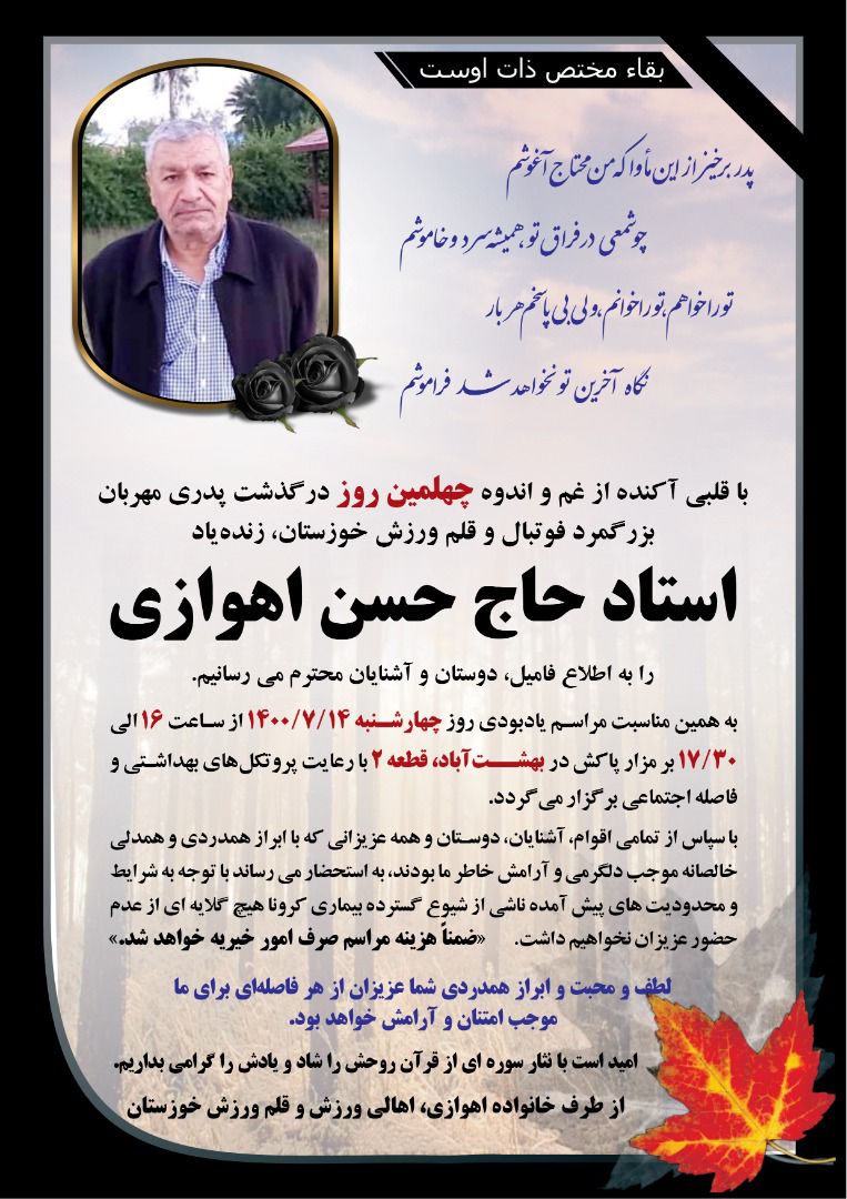 برگزاری آیین چهلمین روز وفات استاد حاج حسن اهوازی