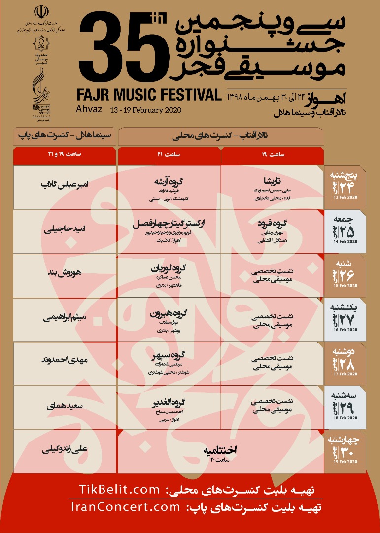 جدول برگزاری سی و پنجمین جشنواره موسیقی فجر در اهواز