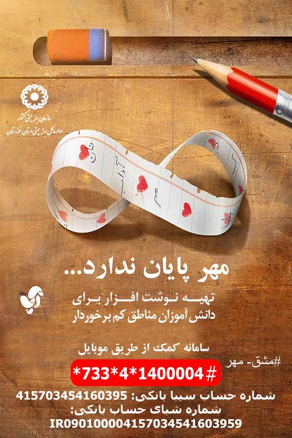 او گفت: تمرکز فعالیت های ما بر روی تأمین لوازم التحریر و پوشاک برای 8 هزار دانش آموز تحت پوشش باقی مانده در مناطق سیل زده است. خیرین، موسسات خیریه و هم استانی های عزیز می توانند از طریق کد موبایل پیمنت به شماره #1400004*4*733* و همچنین با شماره گیری کد #300*733* از طریق تلفن همراه و اپلیکیشن آپ با انتخاب گزینه مشق مهر کمک های خود را به دانش آموزان نیازمند در مناطق محروم اهدا کنند.