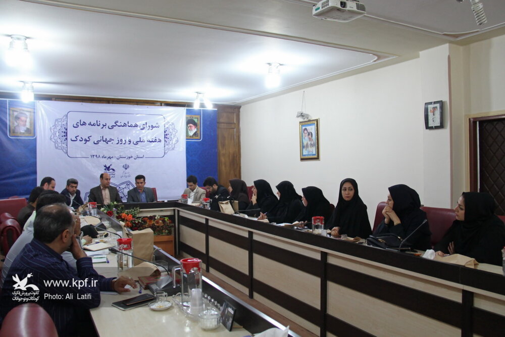در نخستین نشست شورای هماهنگی برنامه‌های هفته ملی کودک که روز 3 مهرماه ۱۳۹۸ با محوریت کانون در استانداری خوزستان برگزار شد؛ نمایندگان سازمان‌ها و نهادهایی مانند آموزش و پرورش، نهاد کتابخانه های عمومی، شهرداری اهوار، بنیاد شهید، بهزیستی، نیروی انتظامی، معاونت بهداشت دانشگاه علوم پزشکی، ورزش و جوانان، جمعیت هلال احمر، آتش نشانی حفاظت محیط زیست، کمیته امداد امام خمینی(ره) و فرمانداری اهواز با یک‌دیگر به بحث و تبادل نظر پرداختند.