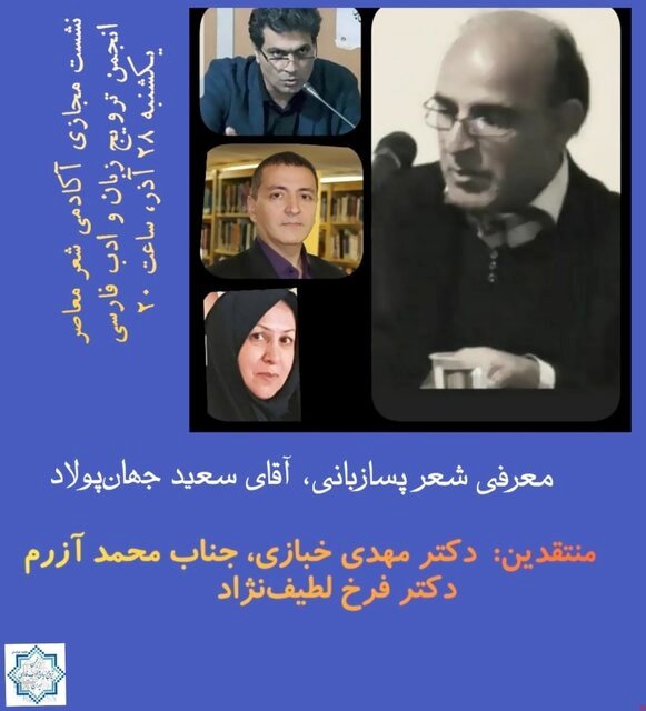 در این نشست آقای سعید جهانپولاد شاعر، شعرپژوه و مترجم به معرفی جریان شعر اروپایی پسازبانی خواهند پرداخت و پس از آن دکتر مهدی خبازی کناری و دکتر فرّخ لطیفنژاد به تشریح و تبیین پایههای فلسفی و شناختی شعر پسازبانی و محمد آزرم به مقایسۀ شعر زبان و پسازبانی میپردازند.